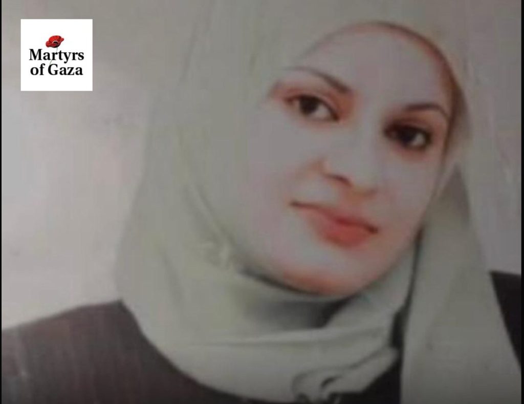 Fidaa was staying at her cousin’s house when the zionist entity bombed it. Killing Fidaa, her cousin’s husband, mother-in-lae, and sister-in-law were all martyred. Fidaa’s children and husband went south, and she was supposed to follow them in the upcoming weeks.